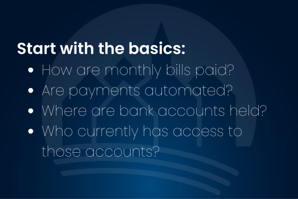 Caregiving touches many areas of a person’s financial life. Having a general understanding of these areas can help families stay organized and proactive.